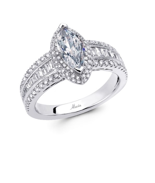 Marquise shaped Engagement Ring to hold .50ct to 1.50ct Marquise Cut Diamond. All styles available in 18ct White, Yellow, Rose Gold or Platinum. Customize the design for different diamond sizes and different shaped center stones.